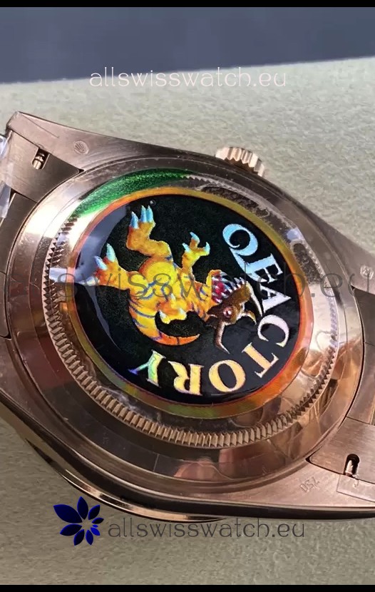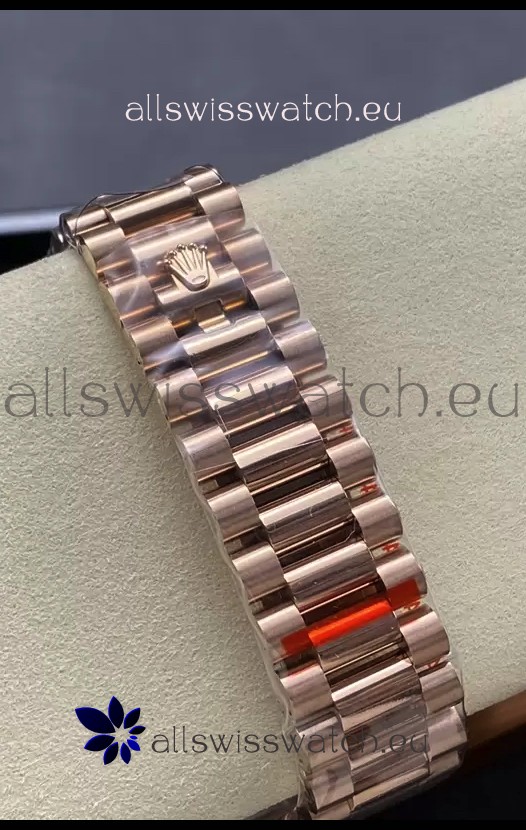 18K Rose Gold Plating on 904L Stainless Steel New Design President Strap with Folding Clasps complete with Rolex Markings and Engravings