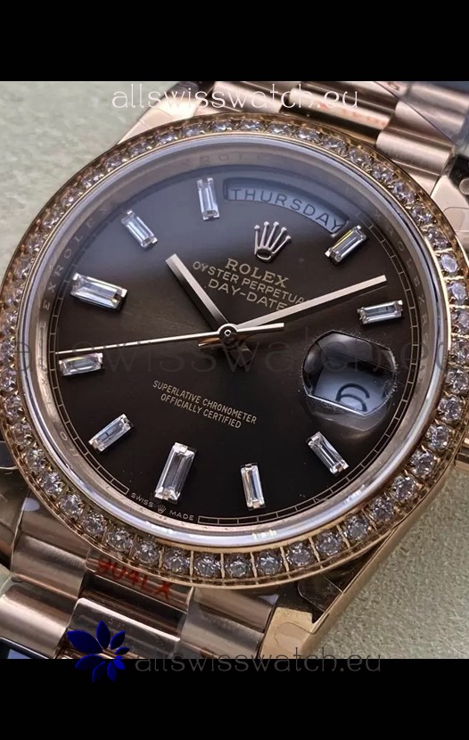 Rolex Day Date 40MM 1:1 Rose Gold in Brown Dial 1:1 Mirror Replica Watch