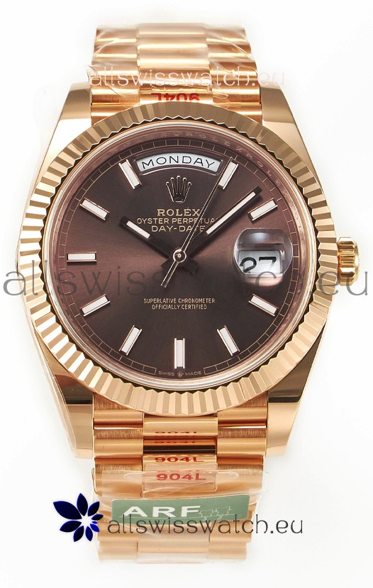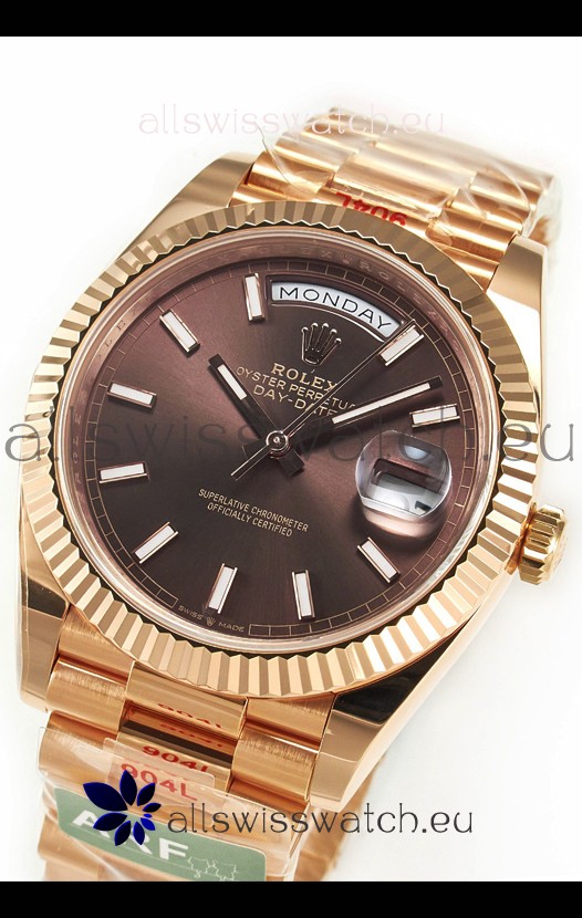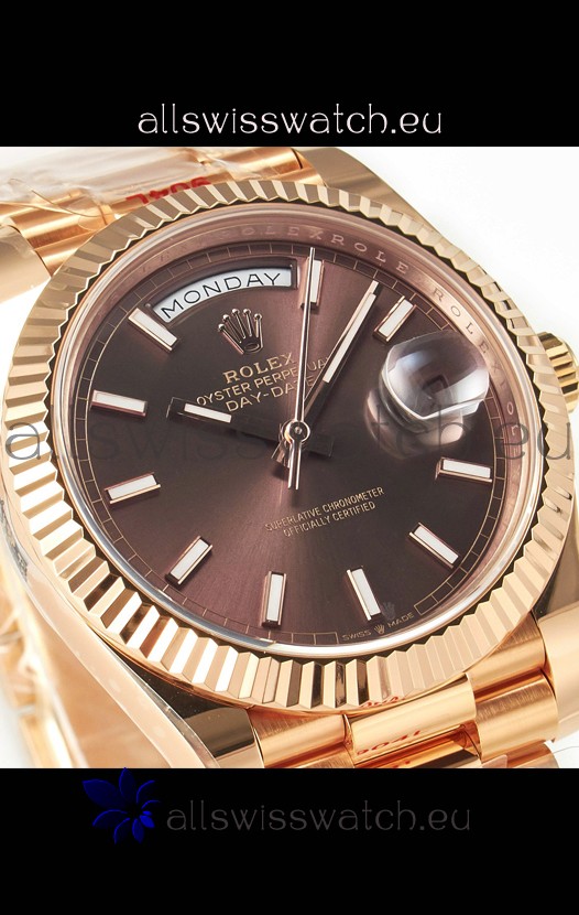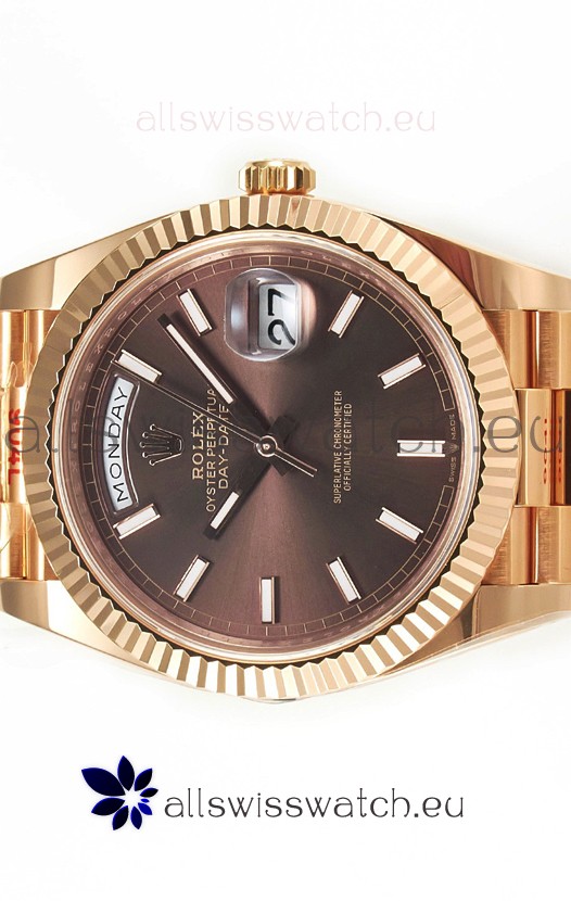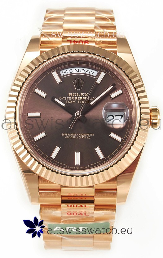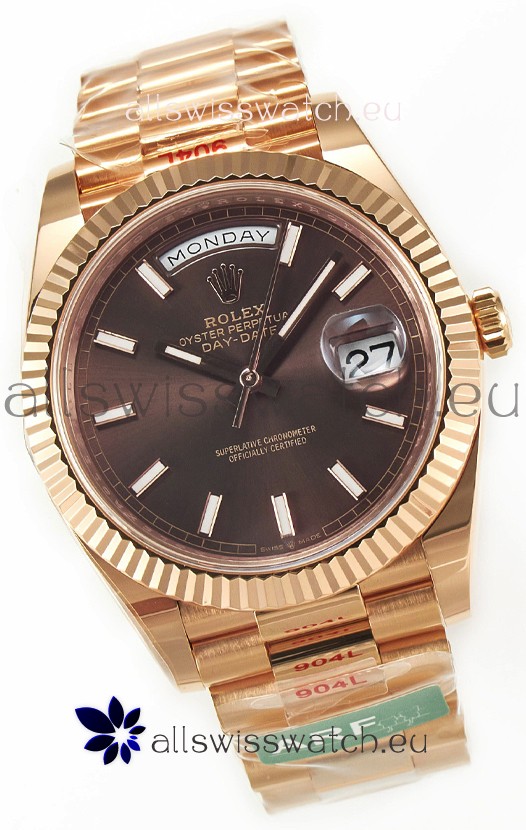 Rolex Day Date 40MM 1:1 Rose Gold in Brown Dial 1:1 Mirror Replica Watch