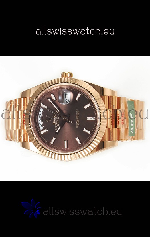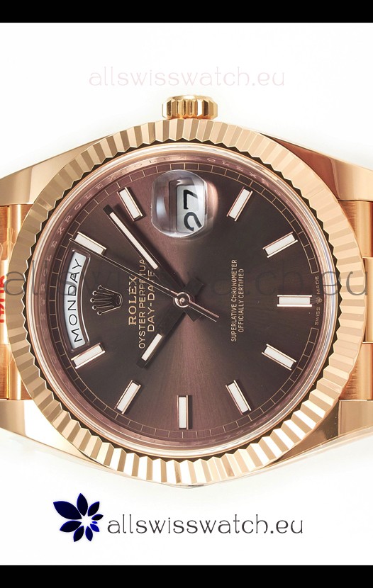 You're reviewing: Rolex Day Date 40MM 1:1 Rose Gold in Brown Dial 1:1 Mirror Replica Watch