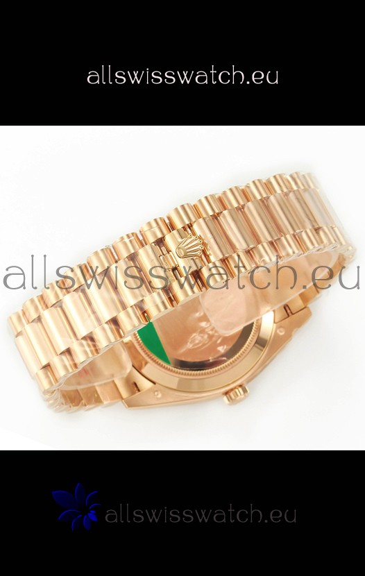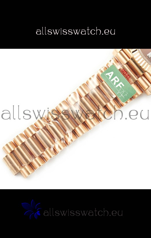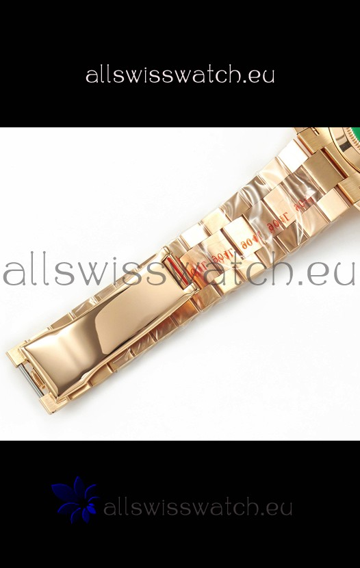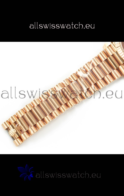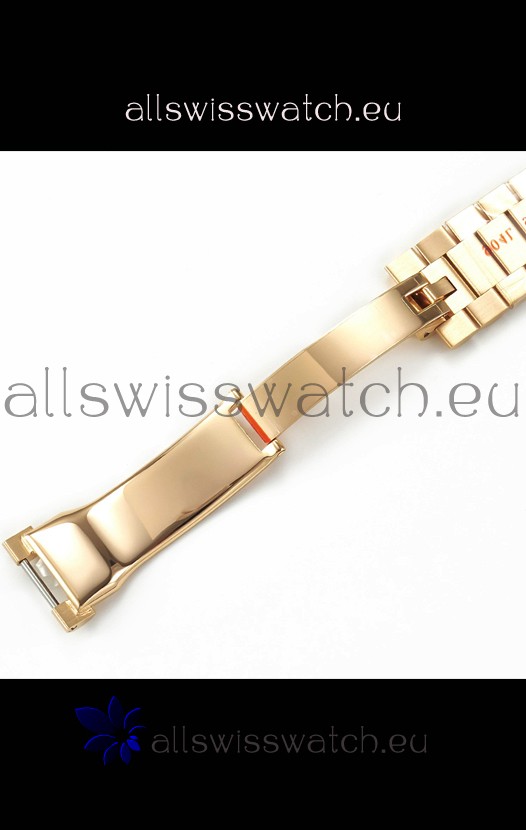 18K Rose Gold Plating on 904L Stainless Steel New Design President Strap with Folding Clasps complete with Rolex Markings and Engravings