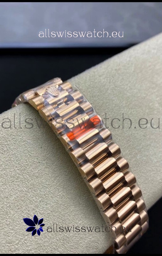 18K Rose Gold Plating on 904L Stainless Steel New Design President Strap with Folding Clasps complete with Rolex Markings and Engravings