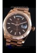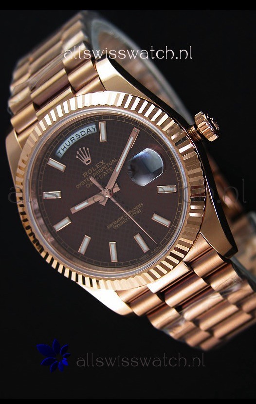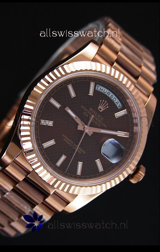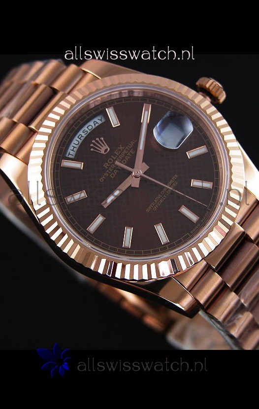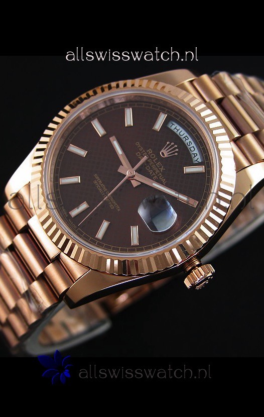 Rolex Day-Date 40MM Rose Gold in Brown Textured Dial Stick Markers