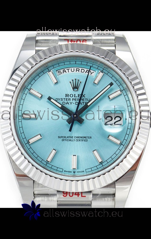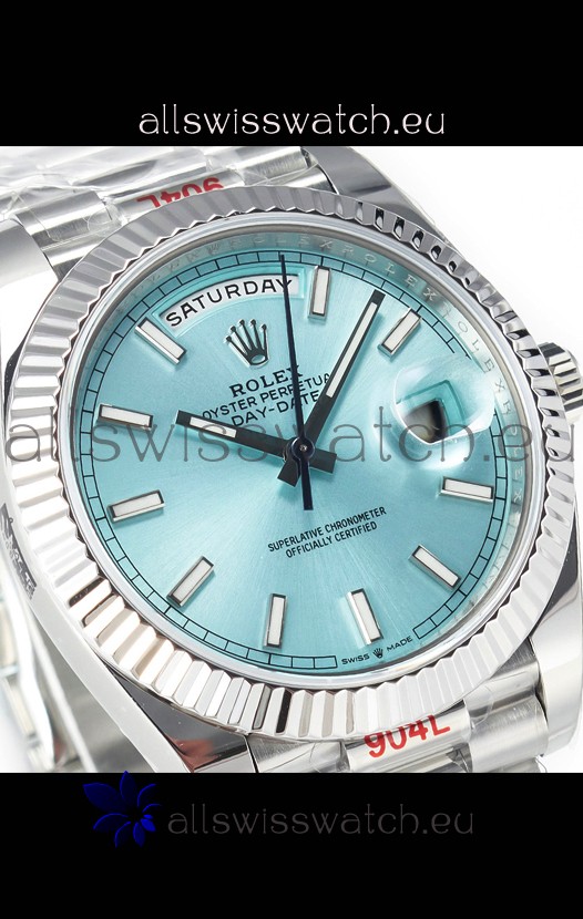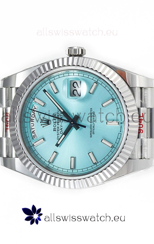 Rolex Day Date 904L Stainless Steel Tiffany Blue Stick Dial Watch 40MM - 1:1 Mirror Quality