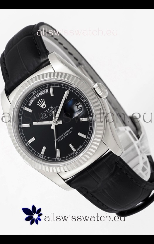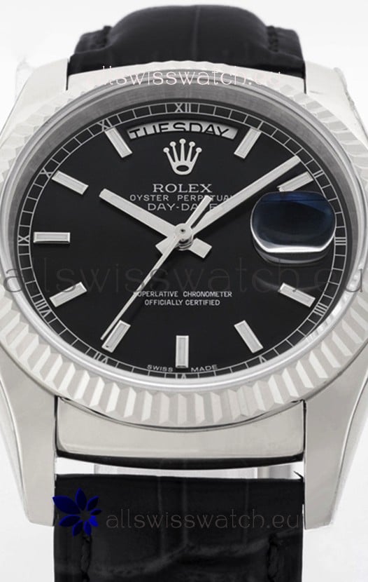 Rolex Day Date 904L Steel Casing Watch in Black Dial 36MM - 1:1 Mirror Quality