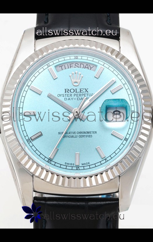 Rolex Day Date 904L Steel Casing Watch in Ice Blue Dial 36MM - 1:1 Mirror Quality