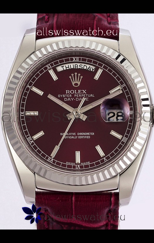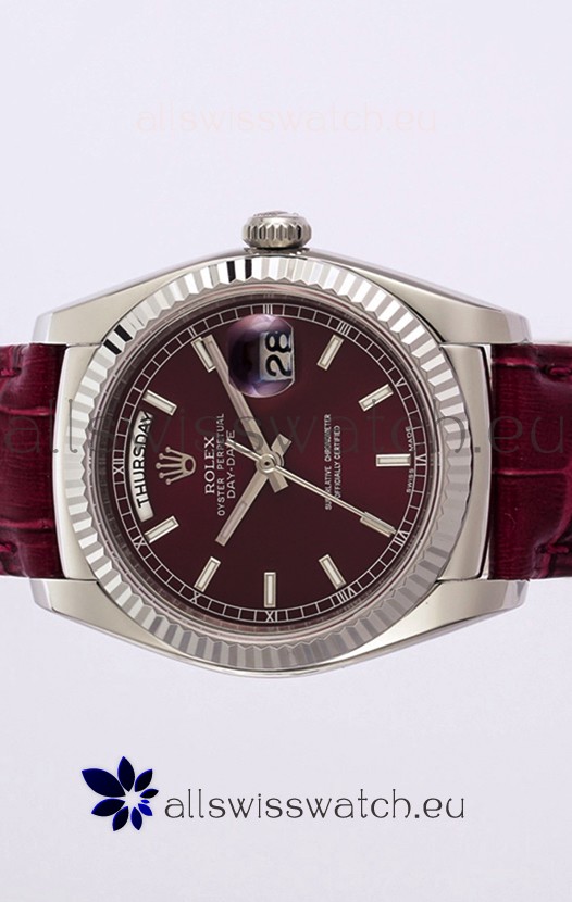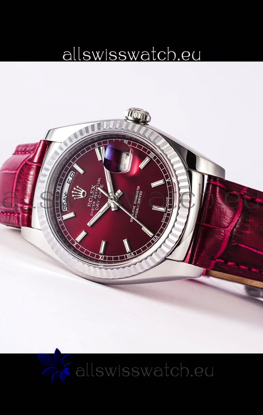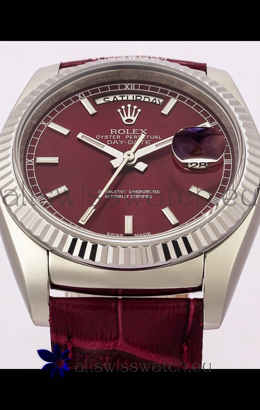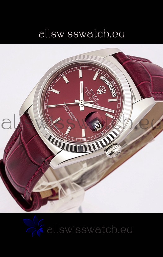 Rolex Day Date 904L Steel Casing Watch in Red Dial 36MM - 1:1 Mirror Quality