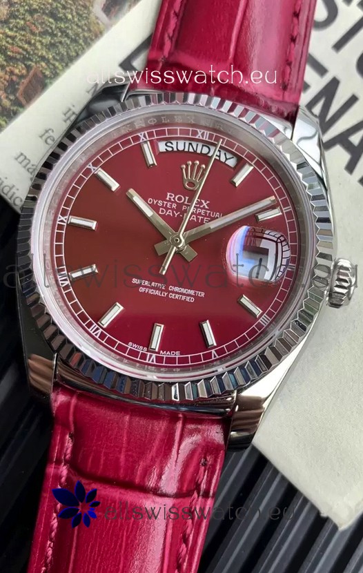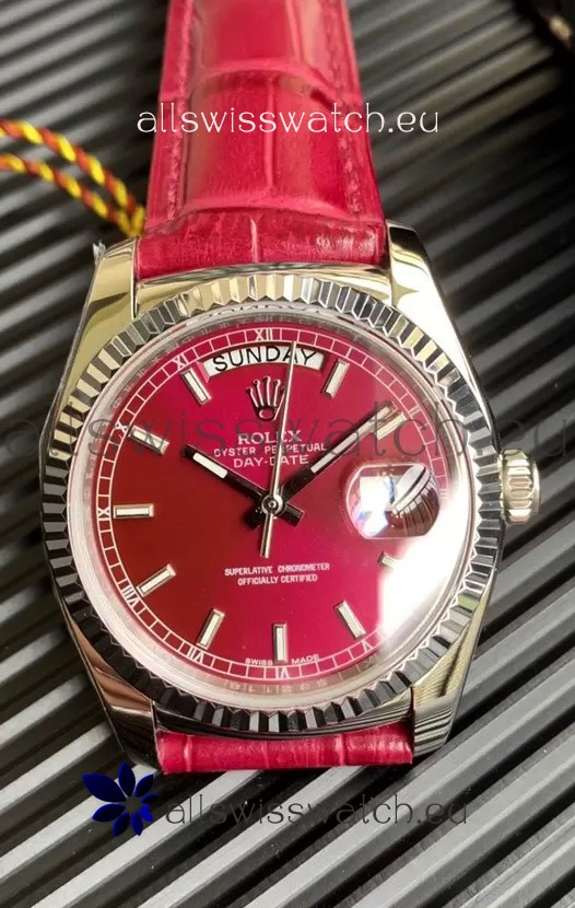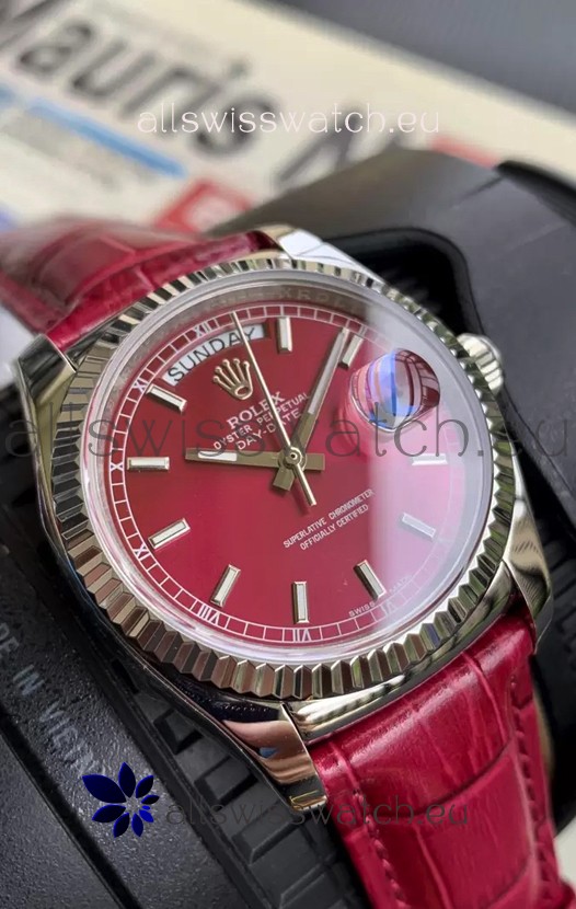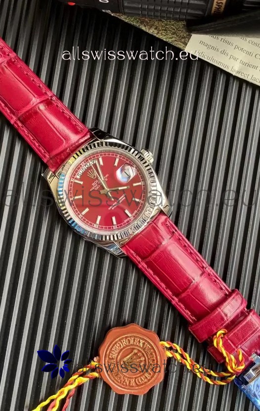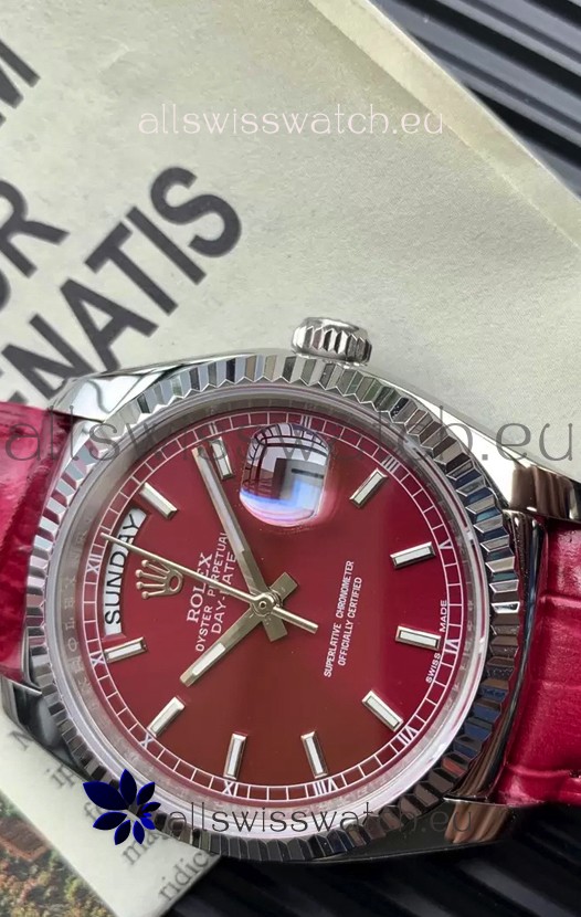 Rolex Day Date 904L Steel Casing Watch in Red Dial 36MM - 1:1 Mirror Quality
