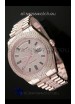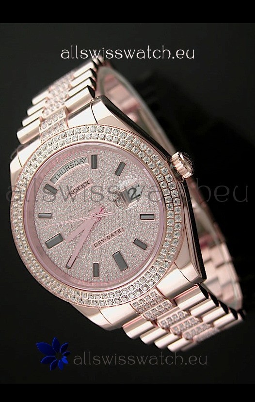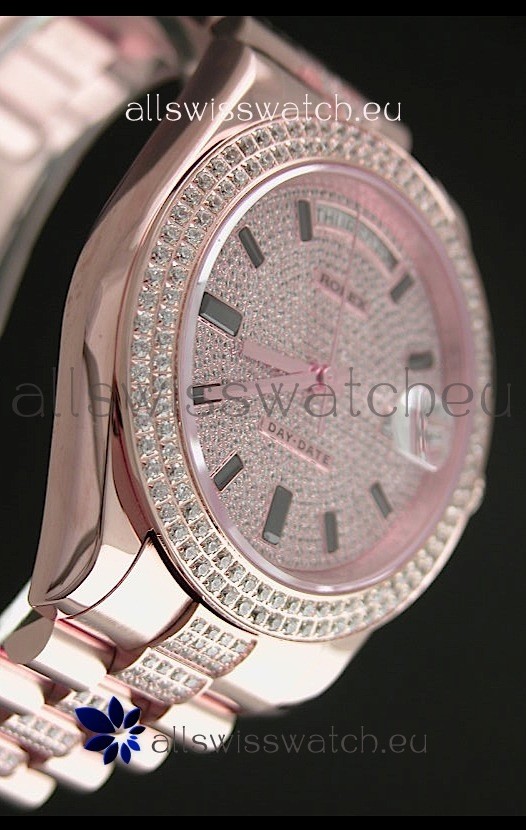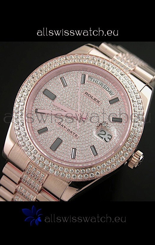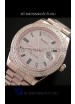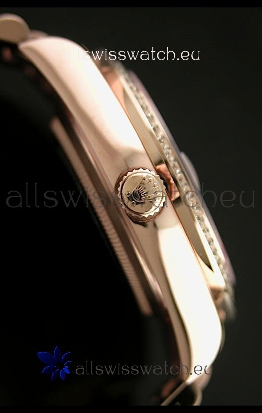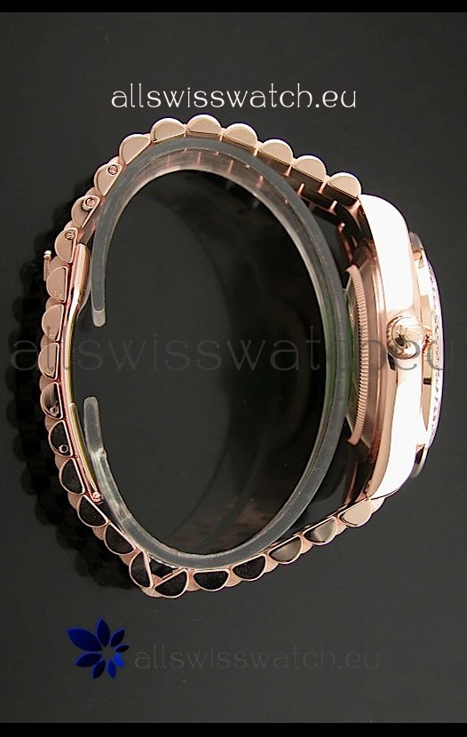 Strap: 18K Rose Gold Plated Presidential Bracelet with Diamond Crestings on Midlinks with Rolesor