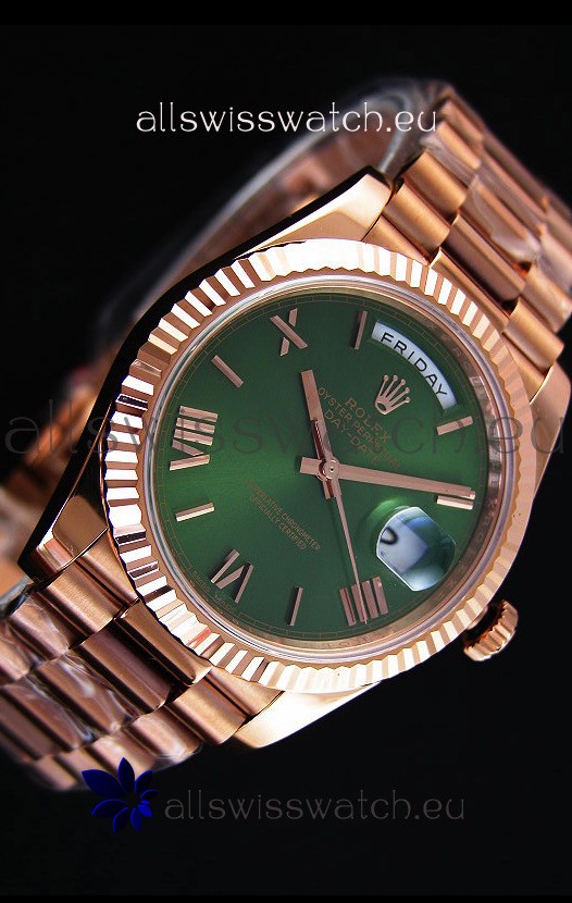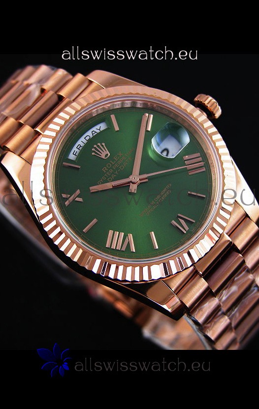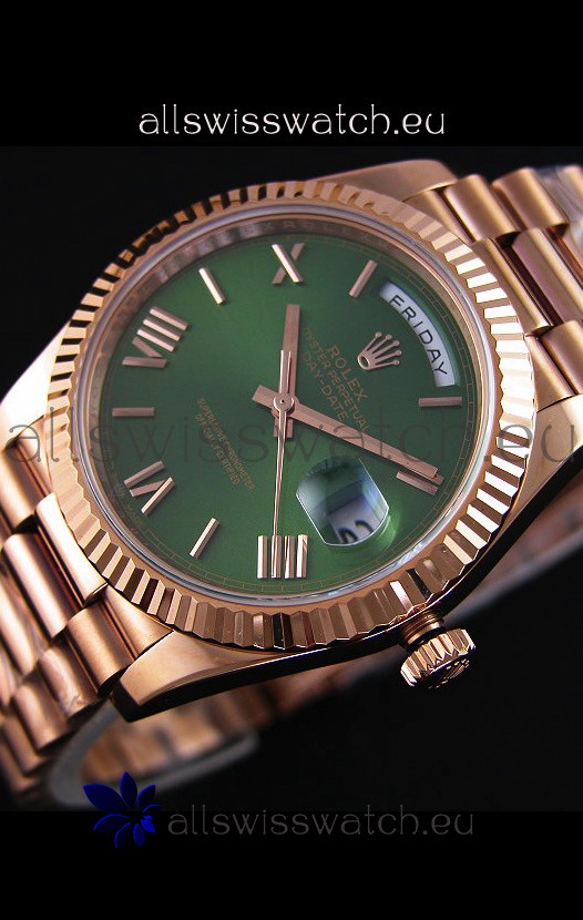 You're reviewing: Rolex Day Date Japanese Replica Watch - Rose Gold Casing in Green Dial 40MM