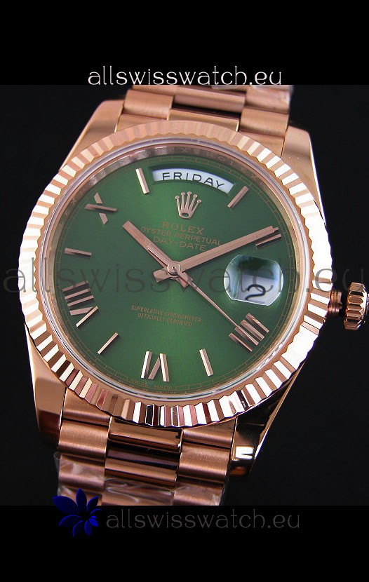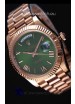 Rolex Day Date Japanese Replica Watch - Rose Gold Casing in Green Dial 40MM