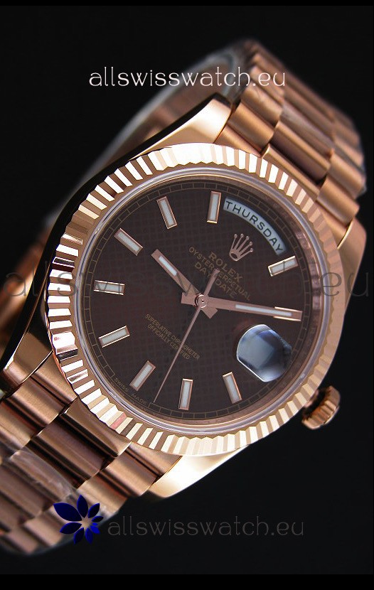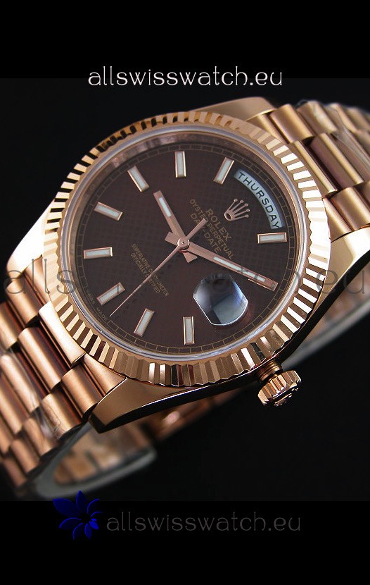 You're reviewing: Rolex Day Date Japanese Replica Watch - Rose Gold Casing in Maroon Dial 40MM