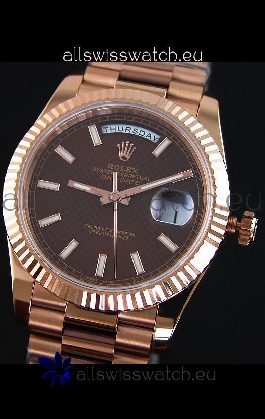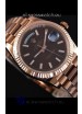 Rolex Day Date Japanese Replica Watch - Rose Gold Casing in Maroon Dial 40MM