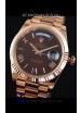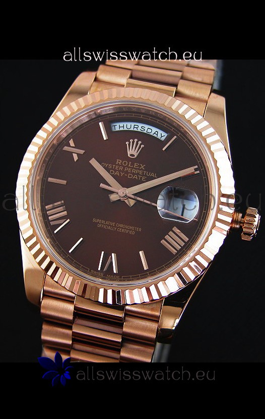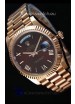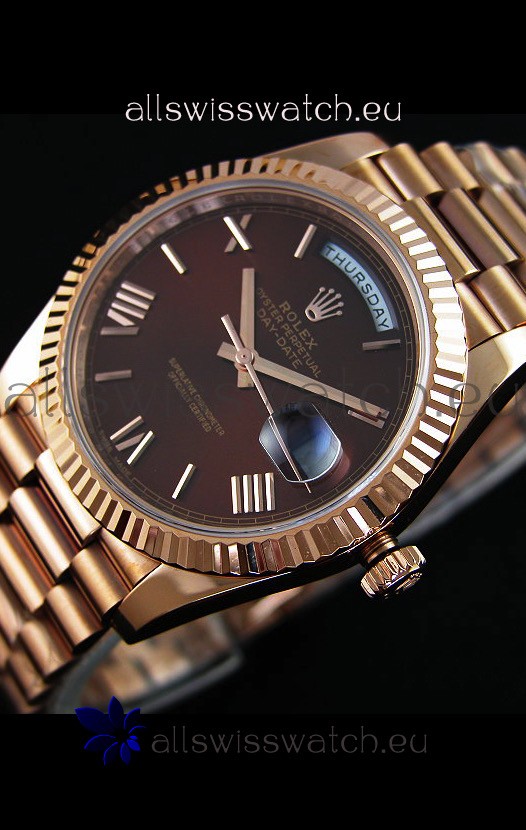 Rolex Day Date Japanese Replica Watch - Rose Gold Casing in Maroon Dial 40MM