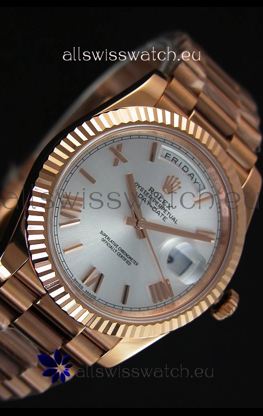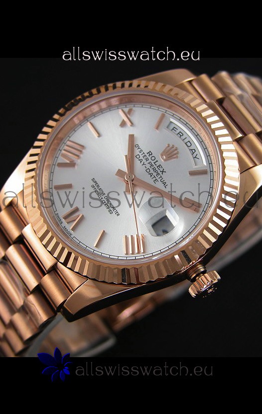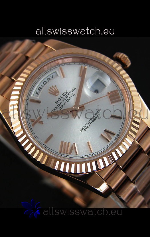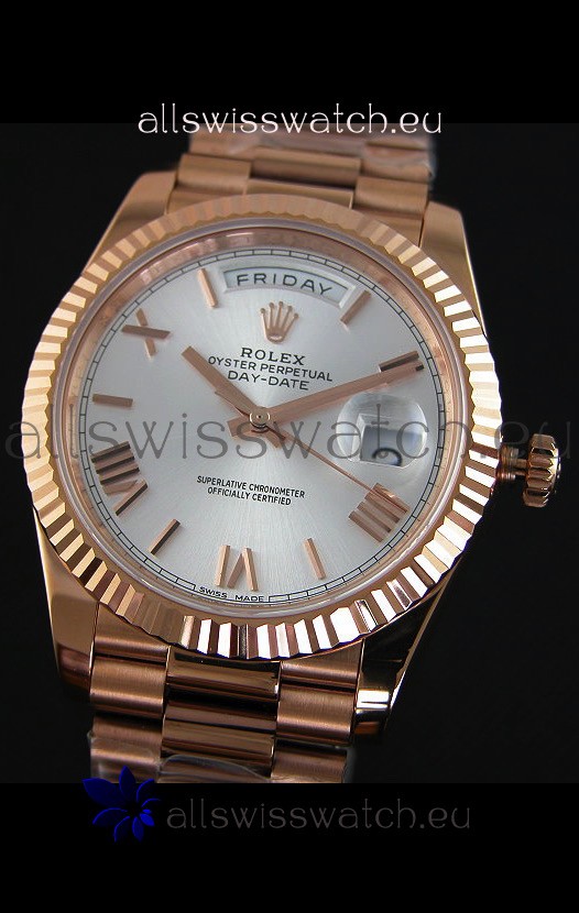 Rolex Day Date Japanese Replica Watch - Rose Gold Casing in Steel Dial 40MM