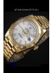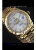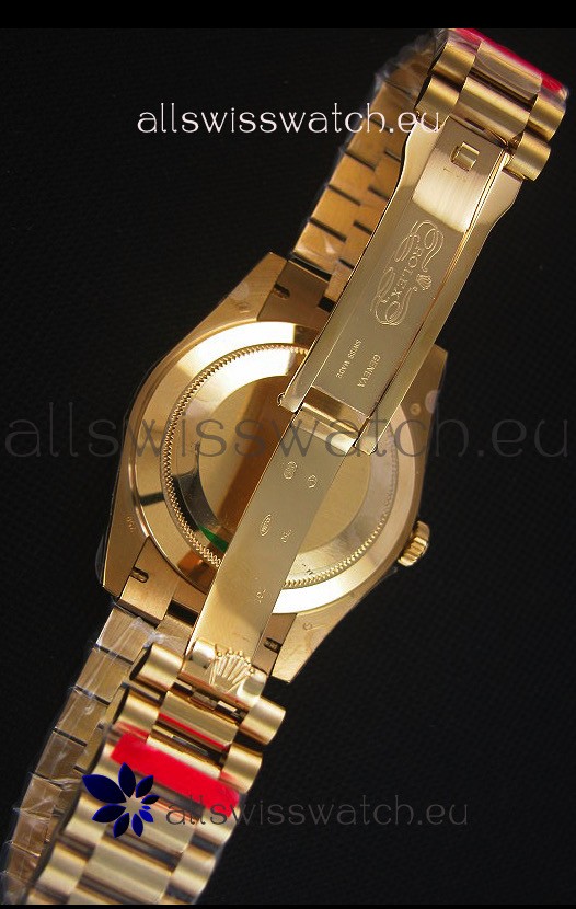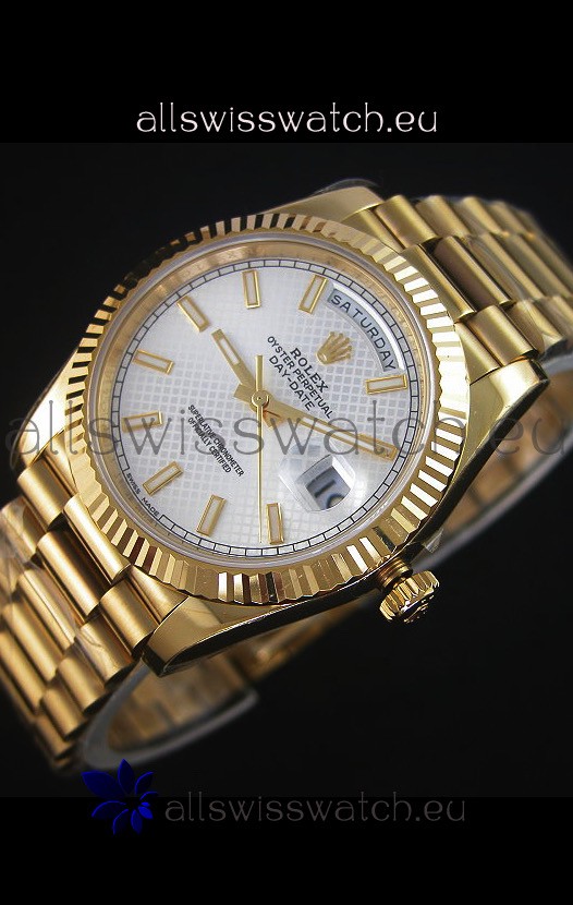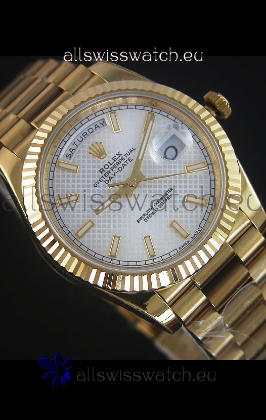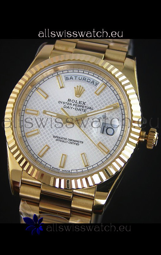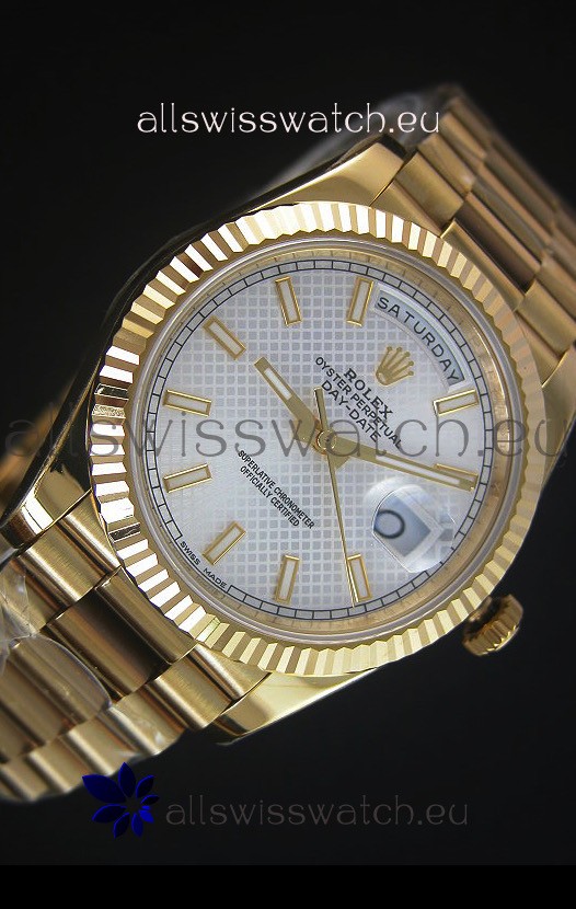Rolex Day Date Japanese Replica Watch - Yellow Gold Casing in Steel Patterned Dial 40MM