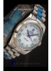 Function: Blue Hour, Minute, Smooth Sweeping Second Hand Movement, Blue Roman Hour Markers, Rolex Logo Eteched at 12 O'Clock, Day Indicator and Date Window at 3:00