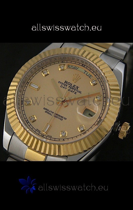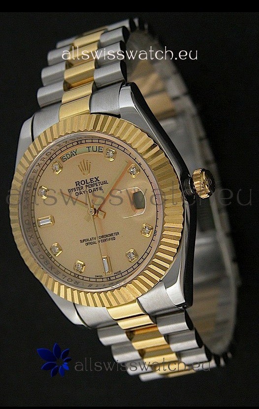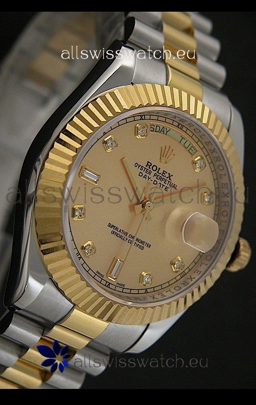 You're reviewing: Rolex Day Date Just Japanese Replica Two Tone Gold Watch in Golden Dial