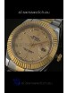 Rolex Day Date Just Japanese Replica Two Tone Gold Watch in Golden Dial