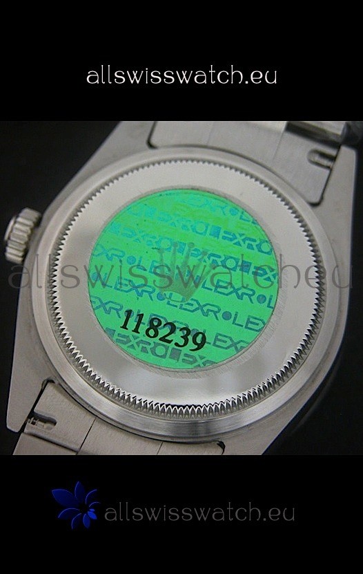 Other Feartures: Full Diamonds Encrested Bezel, Green Hologram Sticker behind the Watch and Scratch Proof Sapphire Crystal with Double Layer Anti Reflective Coating