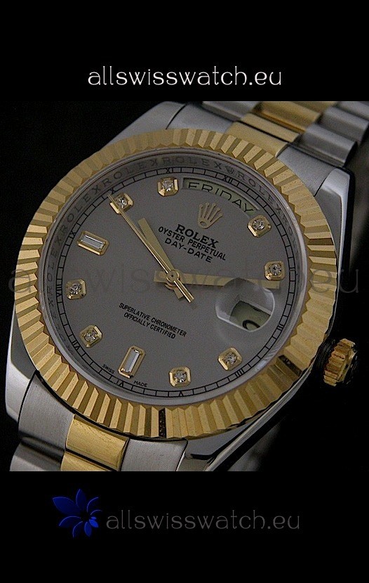 Rolex Day Date Just swiss Replica Two Tone Gold Watch in Grey Dial
