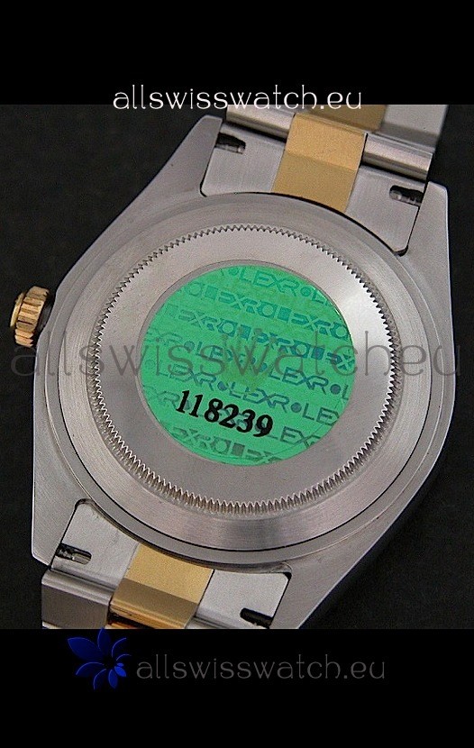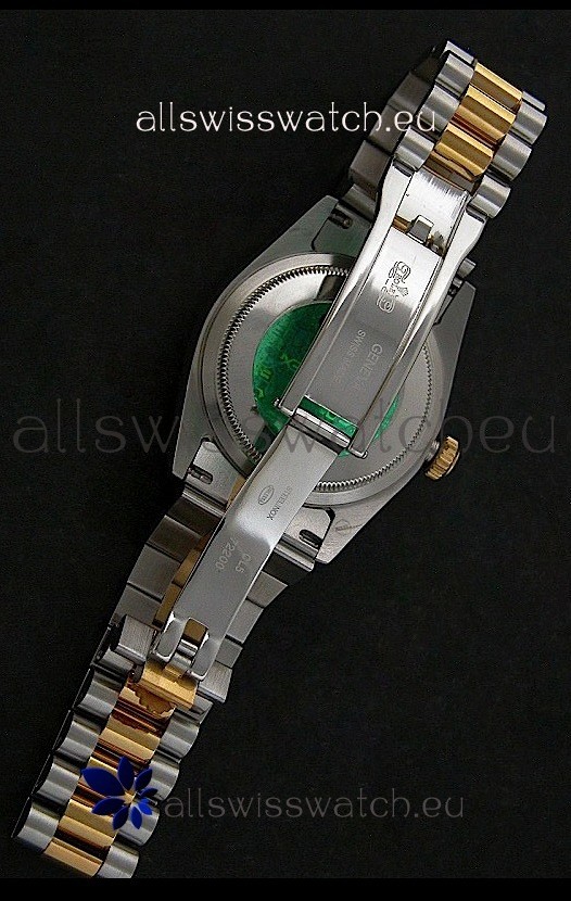 Other Feartures: Yellow Gold Thick Plated on Steel Fluted Bezel, Green Hologram Sticker behind the Watch and Scratch Proof Sapphire Crystal with Double Layer Anti Reflective Coating