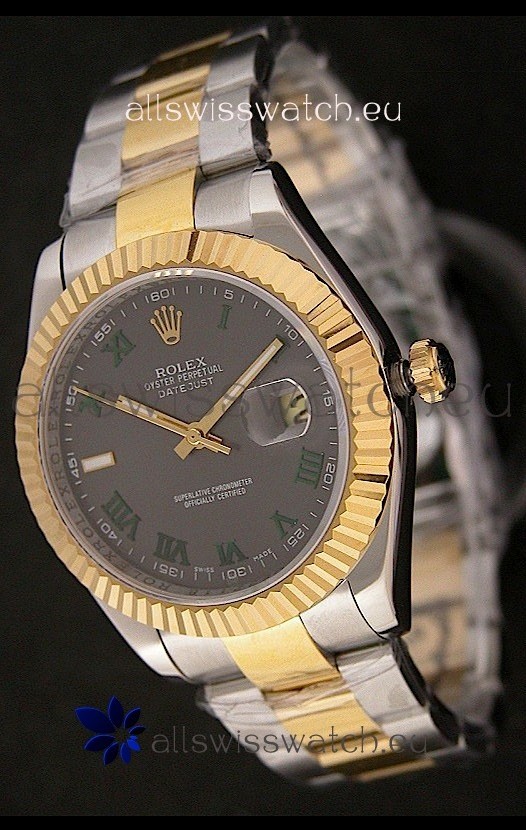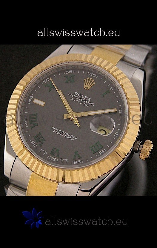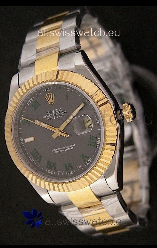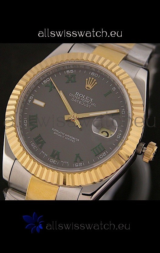 Rolex Day Date Just swiss Replica Two Tone Gold Watch in Grey Dial