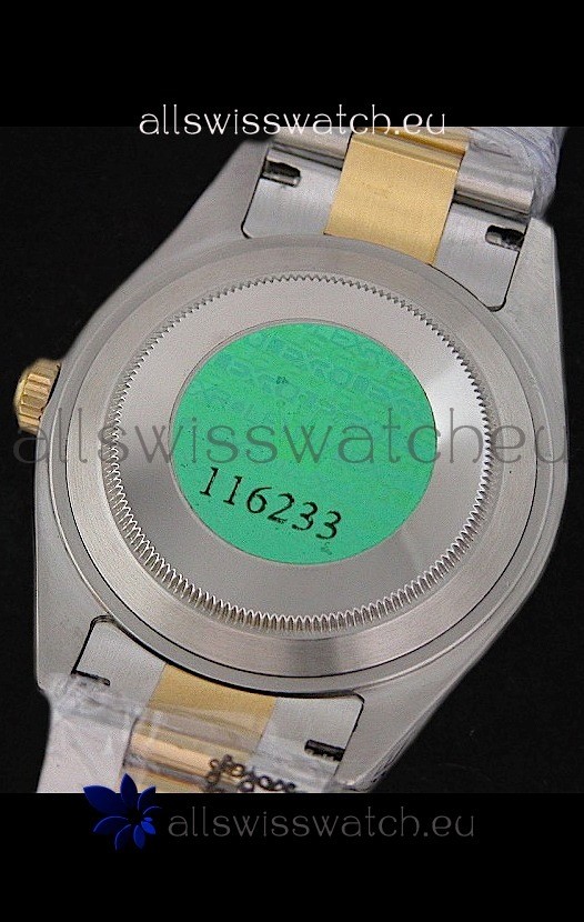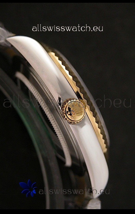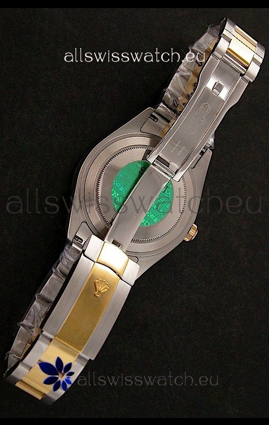 Other Feartures: Yellow Gold Thick Plated on Steel Fluted Bezel, Green Hologram Sticker behind the Watch and Scratch Proof Sapphire Crystal with Double Layer Anti Reflective Coating