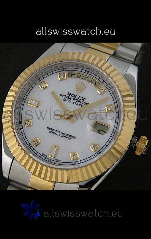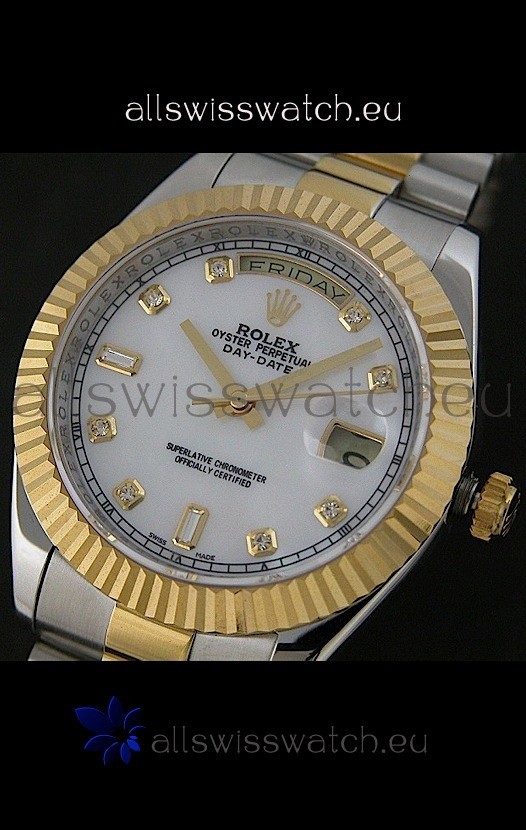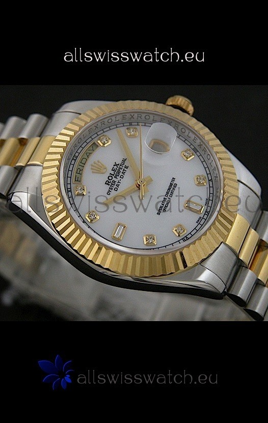 Watch name: Rolex Day Date Just swiss Replica Two Tone Gold Watch in Mop White Dial