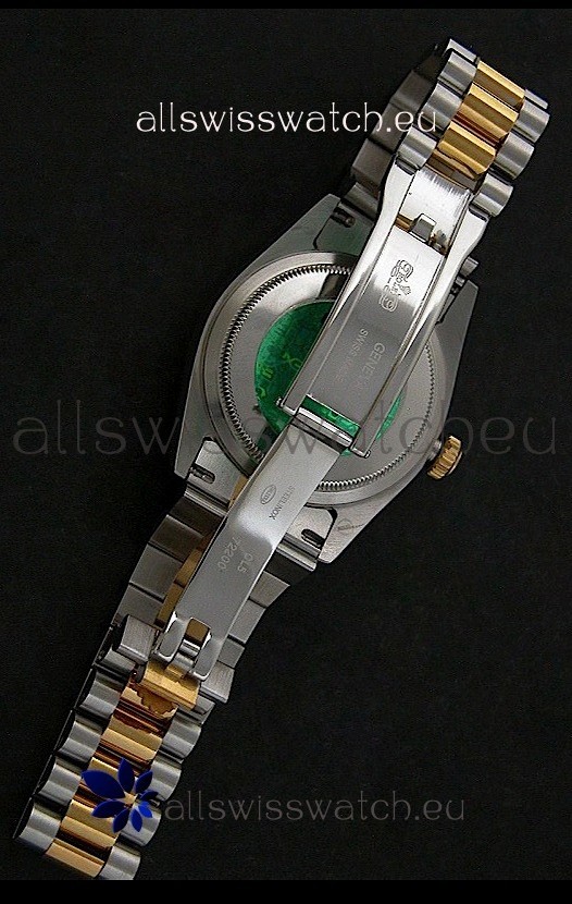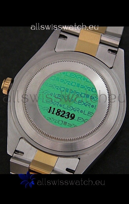 Other Feartures: Yellow Gold Thick Plated on Steel Fluted Bezel, Green Hologram Sticker behind the Watch and Scratch Proof Sapphire Crystal with Double Layer Anti Reflective Coating