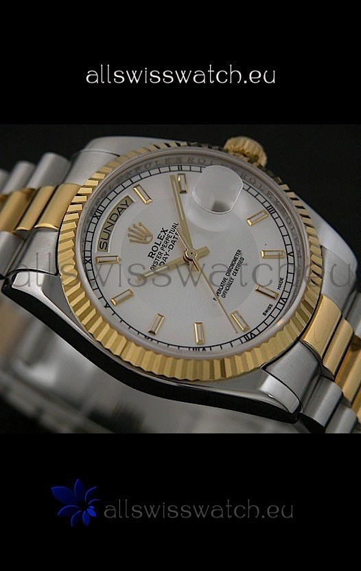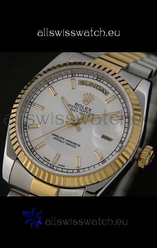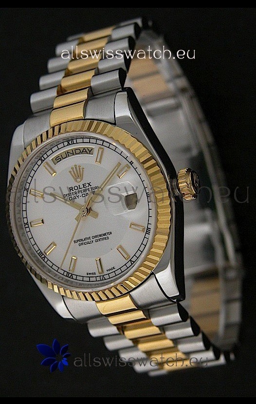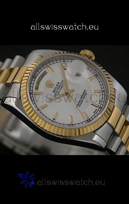 Watch name: Rolex Day Date Just swiss Replica Two Tone Gold Watch in White Dial