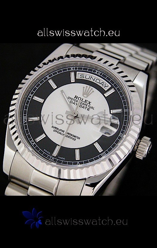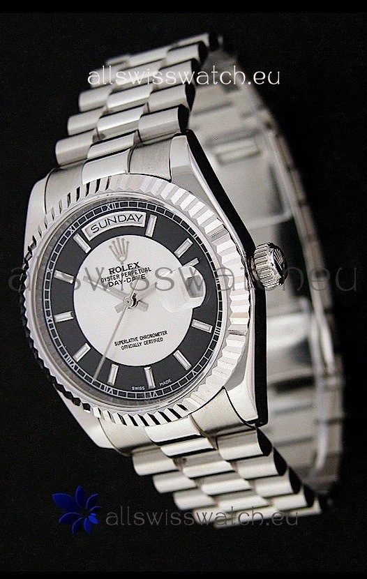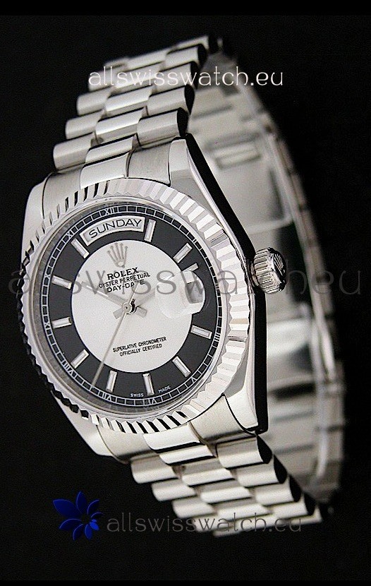Watch name: Rolex Day Date Just swiss Replica Watch in Black & White Dial