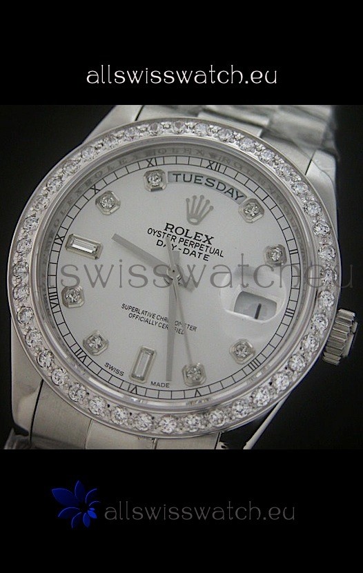 Rolex Day Date Just swiss Replica Watch in Full Diamond Bezel