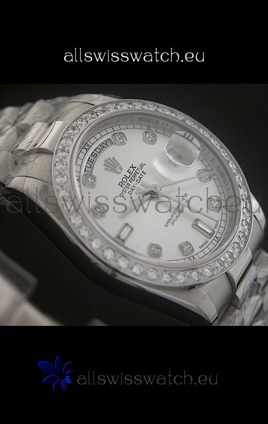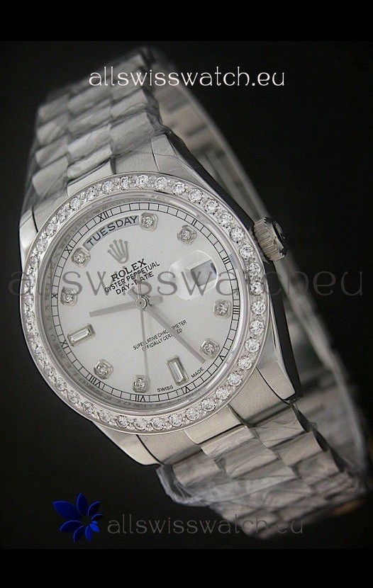 Watch name: Rolex Day Date Just swiss Replica Watch in Full Diamond Bezel