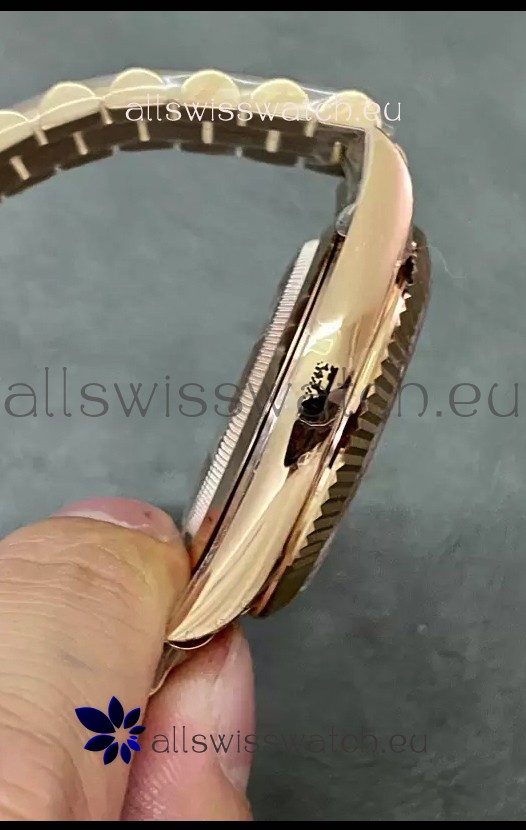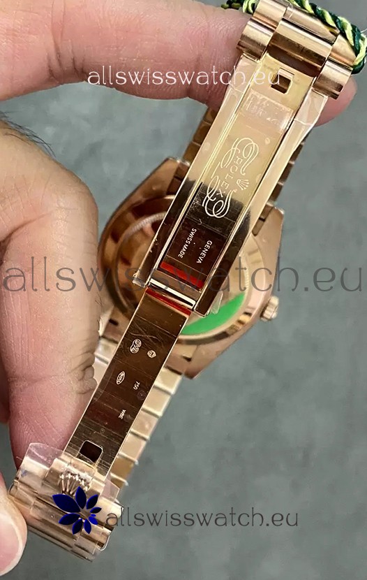 18K Rose Gold Plating on 904L Stainless Steel New Design President Strap with Folding Clasps complete with Rolex Markings and Engravings