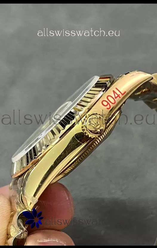 18K Rose Gold Plating on 904L Stainless Steel New Design President Strap with Folding Clasps complete with Rolex Markings and Engravings