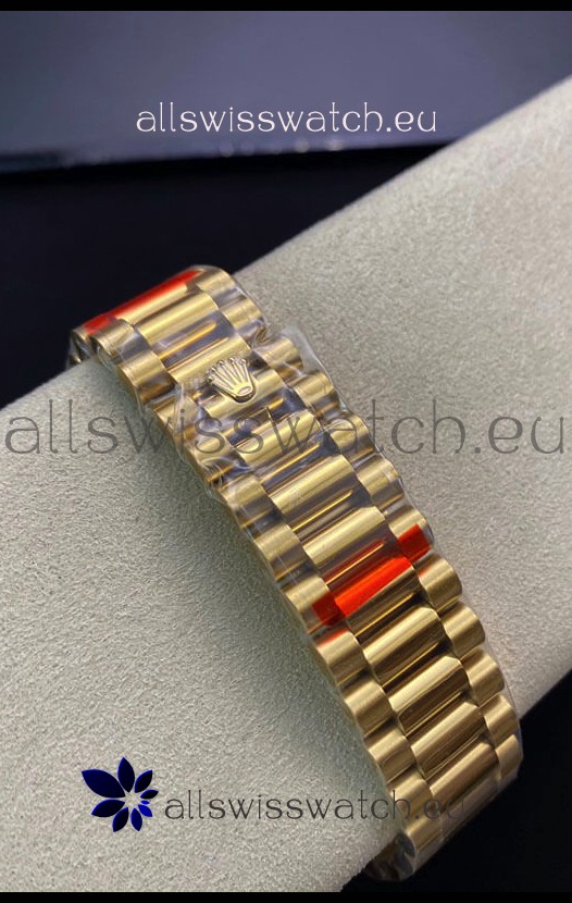 18K Yellow Gold Plating on 904L Stainless Steel New Design President Strap with Folding Clasps complete with Rolex Markings and Engravings