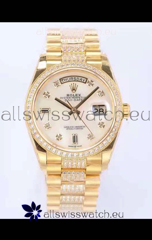 Rolex Day Date Presidential 18K Yellow Gold Watch 36MM - White Pearl Dial 1:1 Mirror Quality Watch
