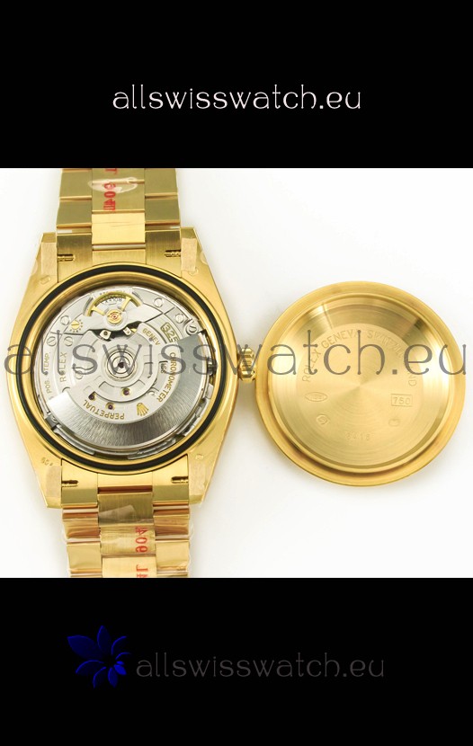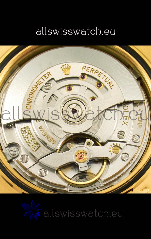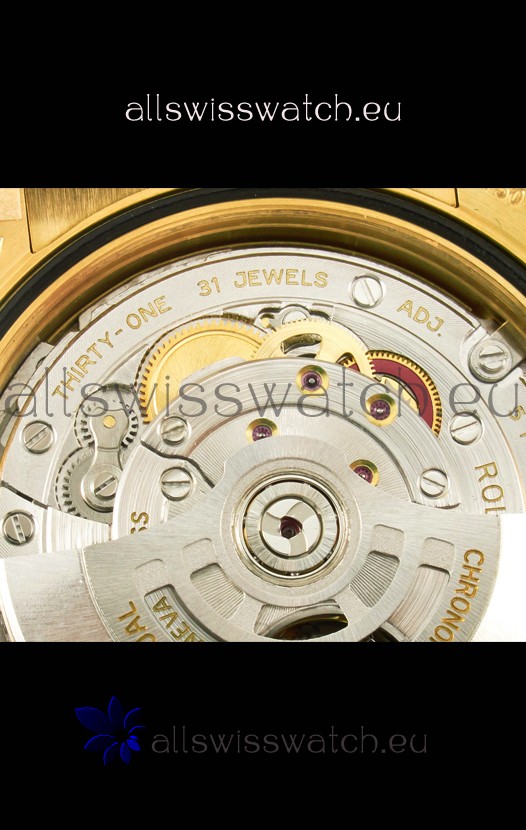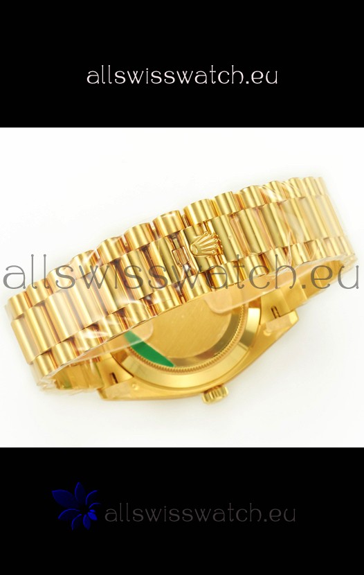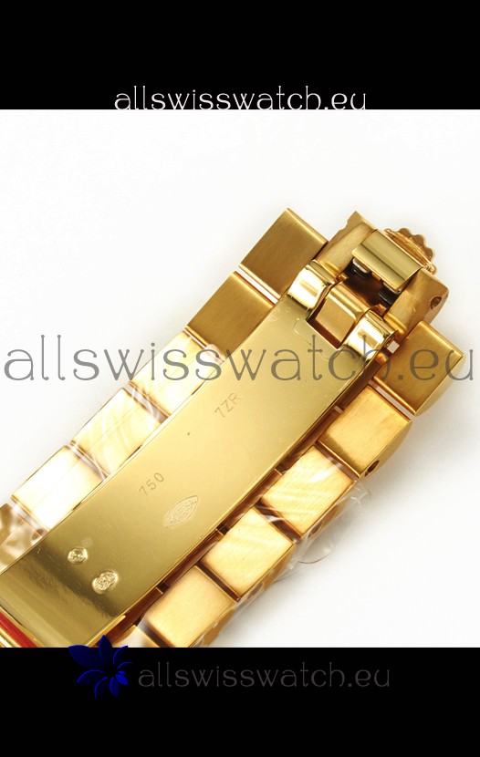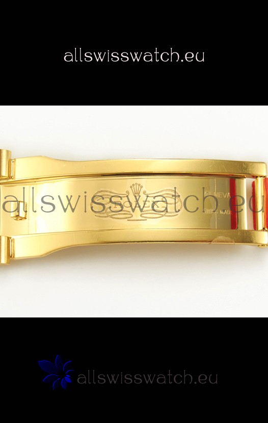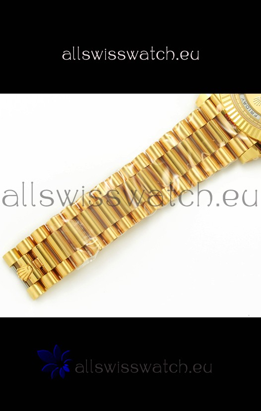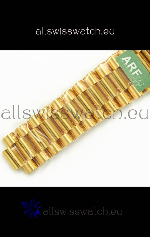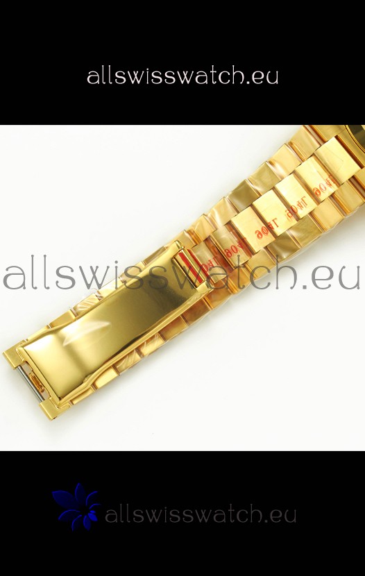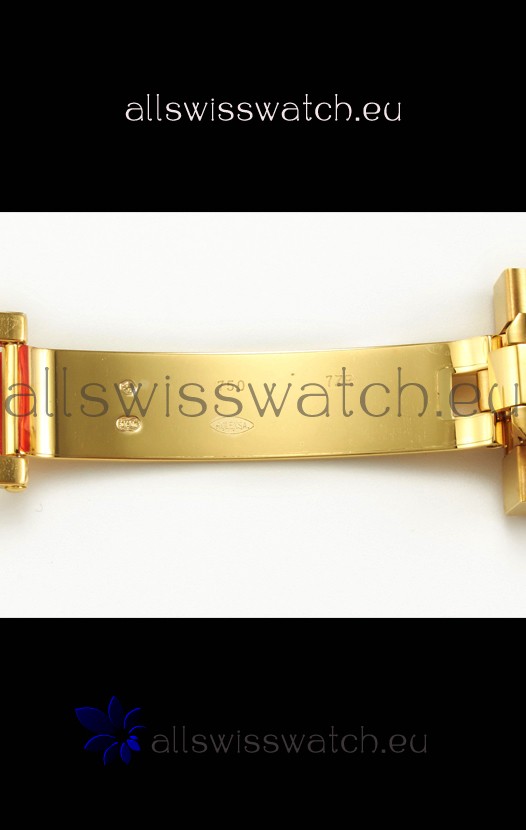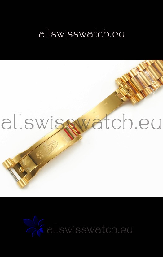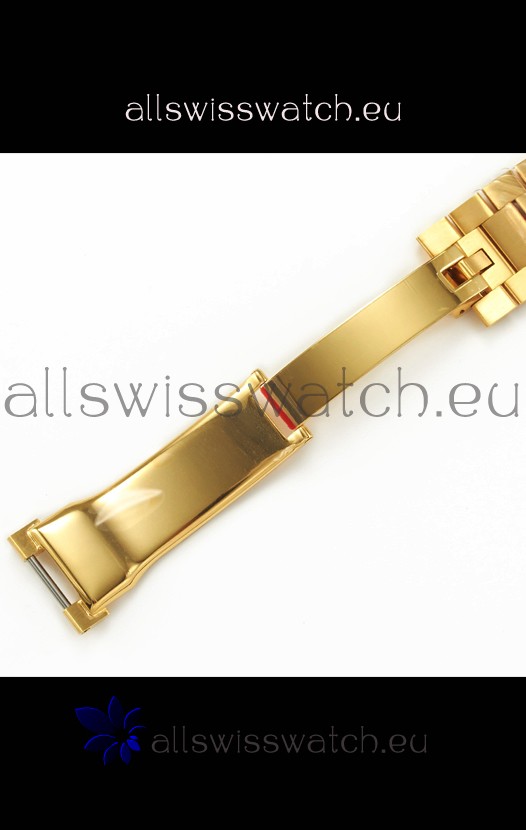 18K Yellow Gold Plating on 904L Stainless Steel New Design President Strap with Folding Clasps complete with Rolex Markings and Engravings