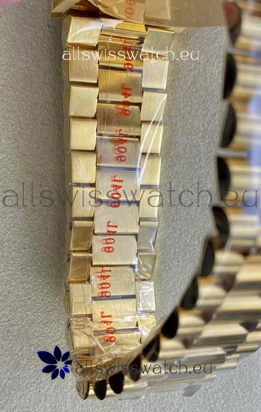 18K Yellow Gold Plating on 904L Stainless Steel New Design President Strap with Folding Clasps complete with Rolex Markings and Engravings