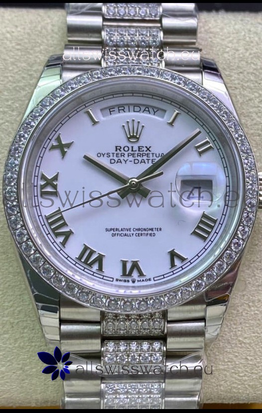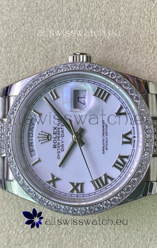 Rolex Day Date Presidential M128349RBR-0026 904L Steel 36MM - White Roman Dial 1:1 Mirror Quality