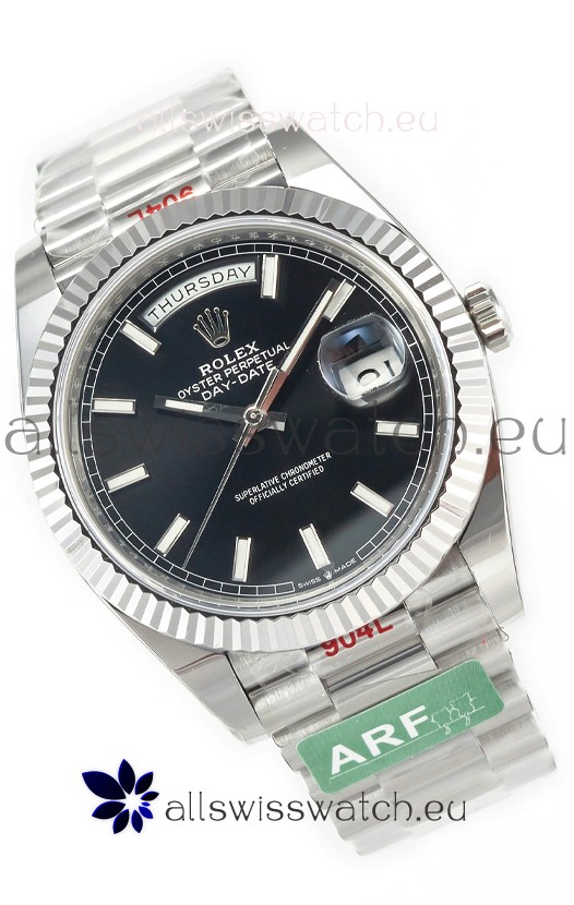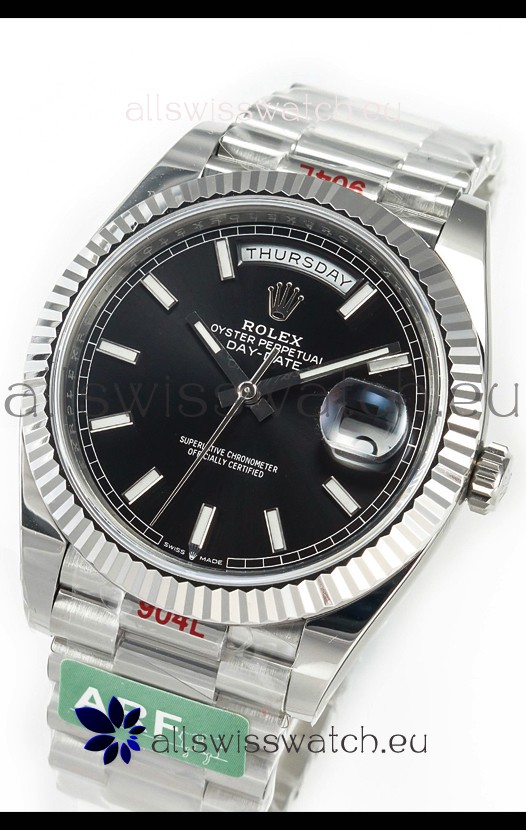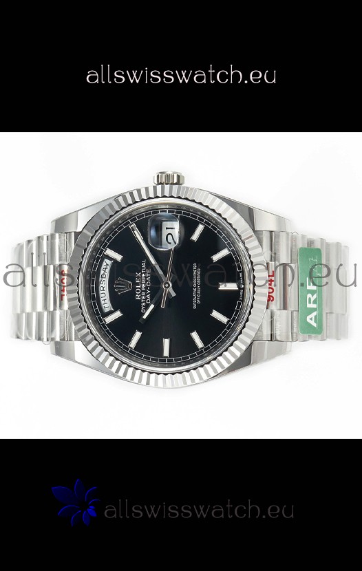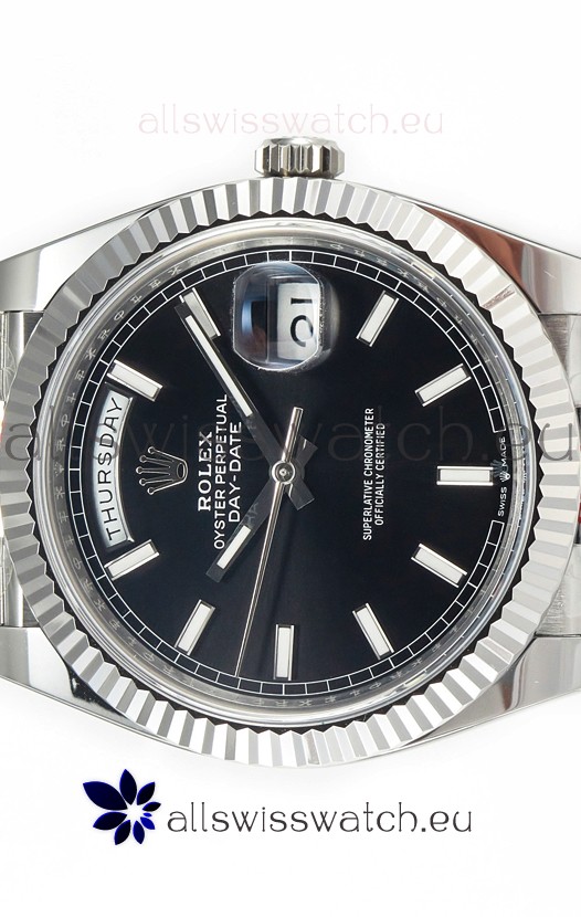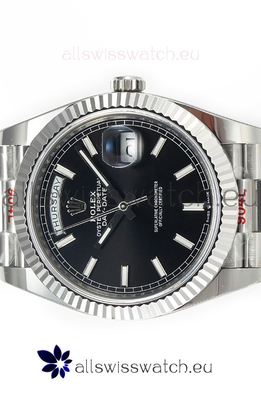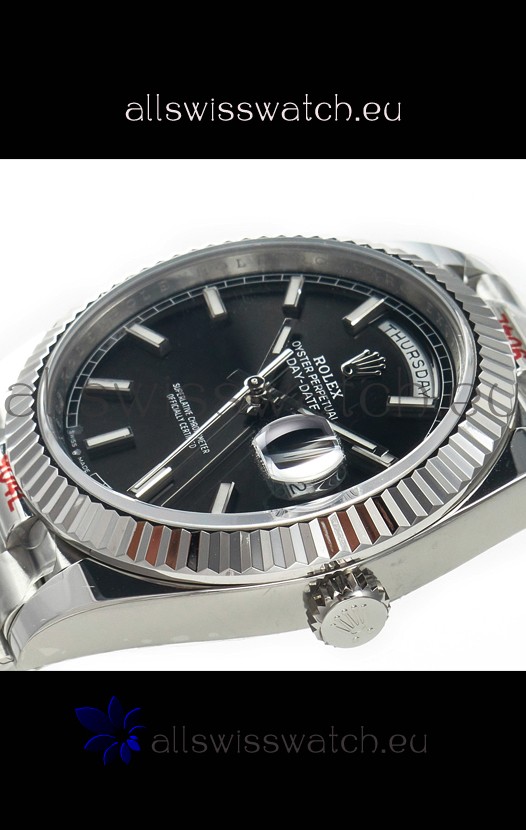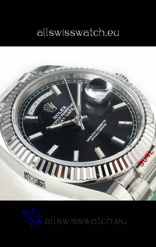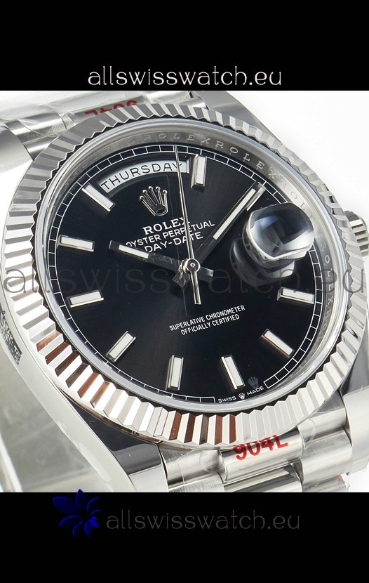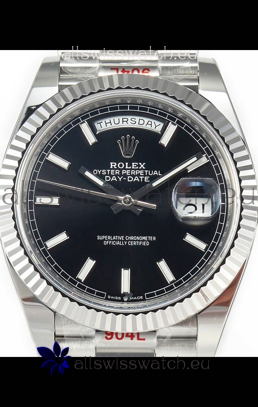 Rolex Day Date Presidential Stainless Steel Black Dial Watch 40MM - 1:1 Mirror Quality