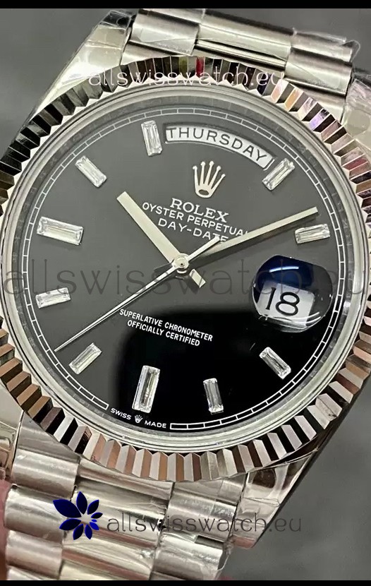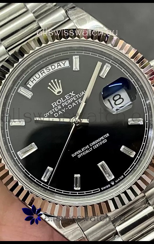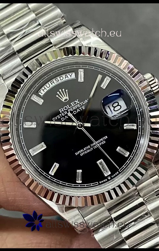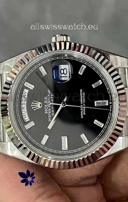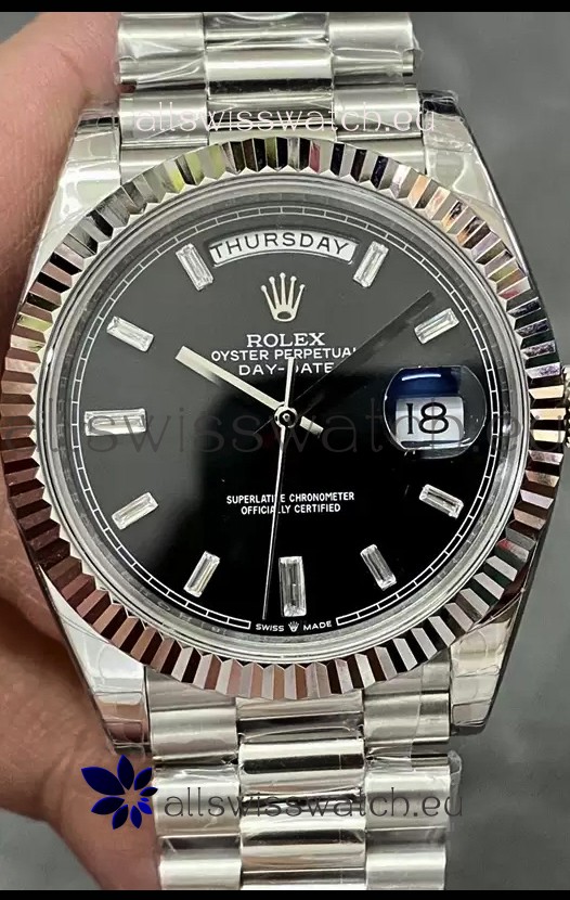 Rolex Day Date Presidential Stainless Steel Black Dial Watch 40MM - 1:1 Mirror Quality