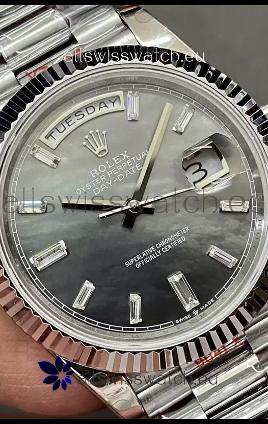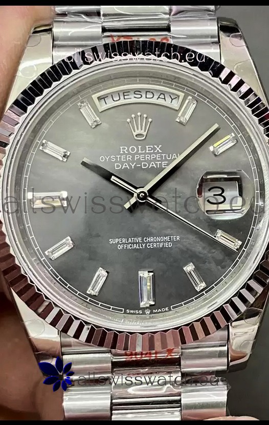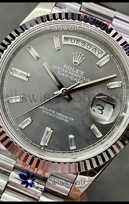 Rolex Day Date Presidential Stainless Steel Grey Pearl Dial Watch 40MM - 1:1 Mirror Quality