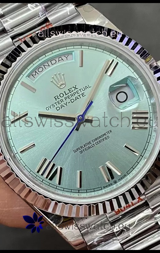 Rolex Day Date Presidential Stainless Steel ICE Blue Dial Watch 40MM - 1:1 Mirror Quality