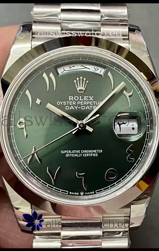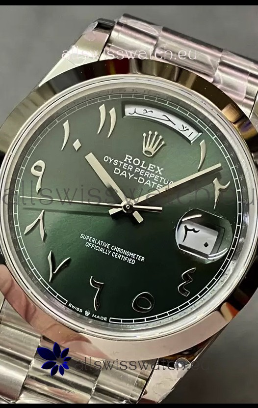 Rolex Day Date Presidential Stainless Steel Olive Green Arab Dial Watch 40MM - 1:1 Mirror Quality