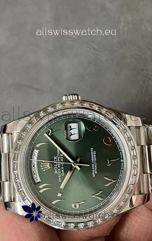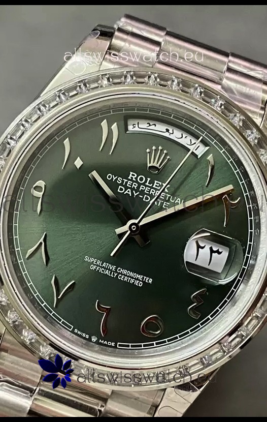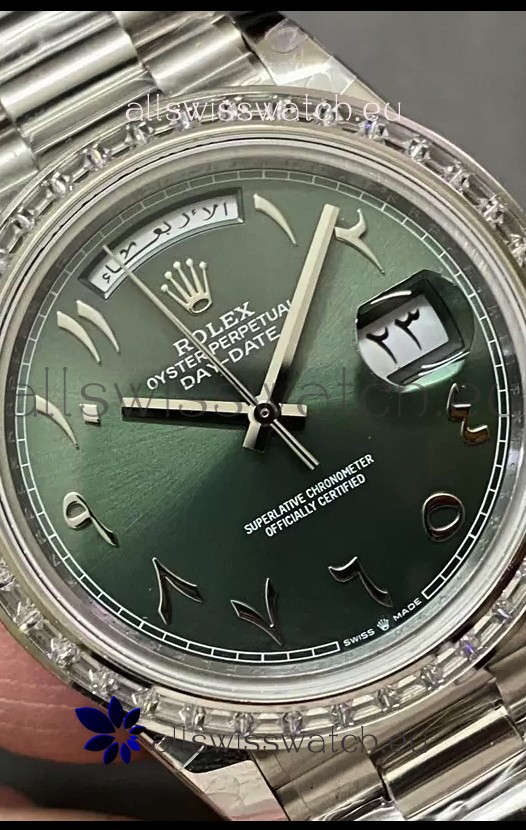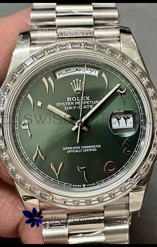 Rolex Day Date Presidential Stainless Steel Olive Green Arab Dial Watch 40MM - 1:1 Mirror Quality