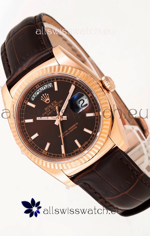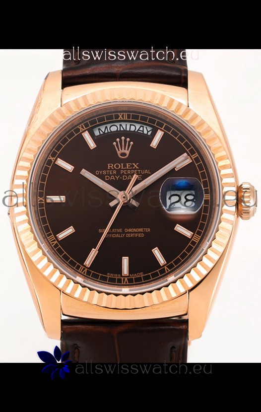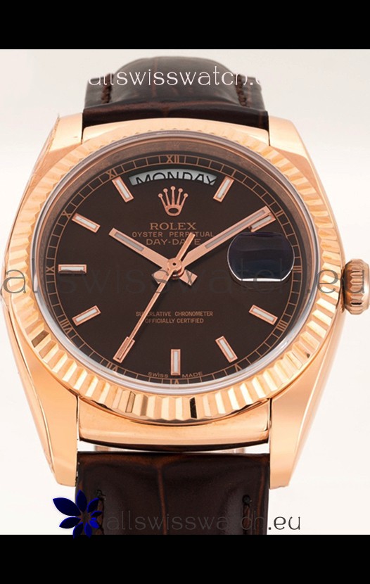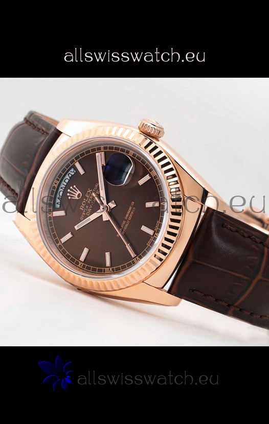 Rolex Day Date Rose Gold 904L Steel Casing Watch in Brown Dial 36MM - 1:1 Mirror Quality