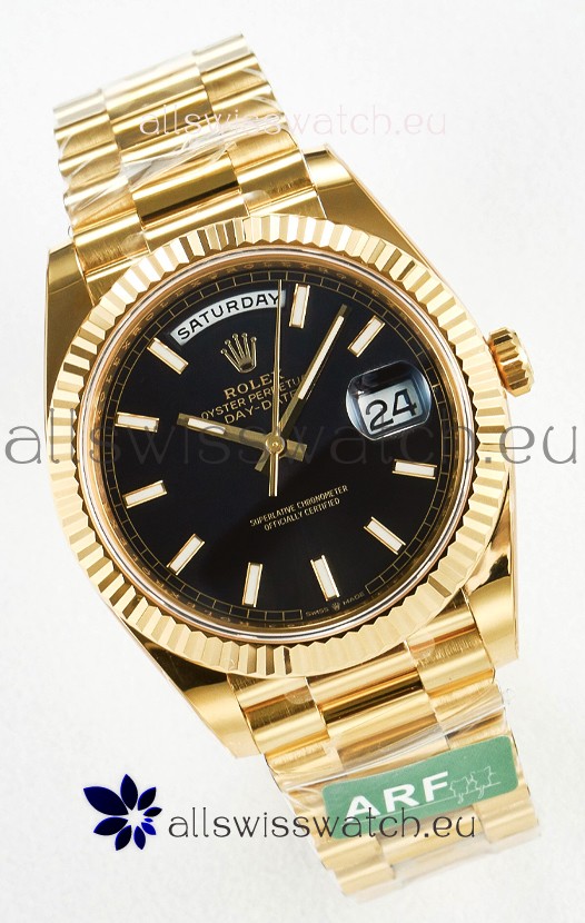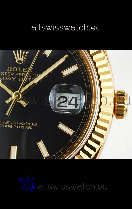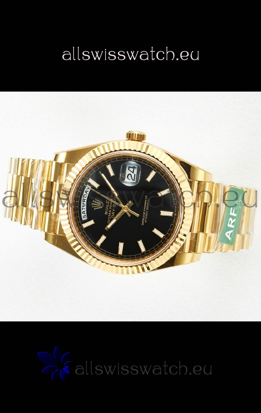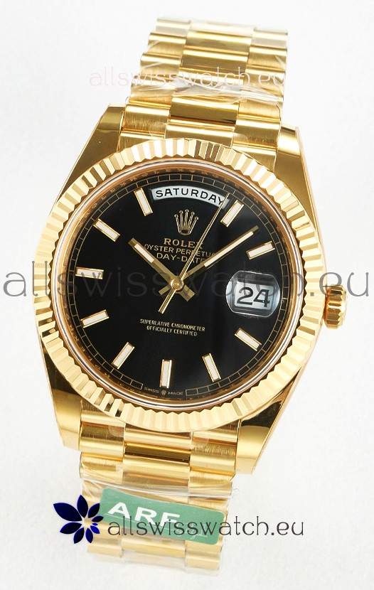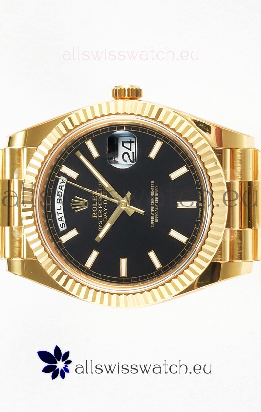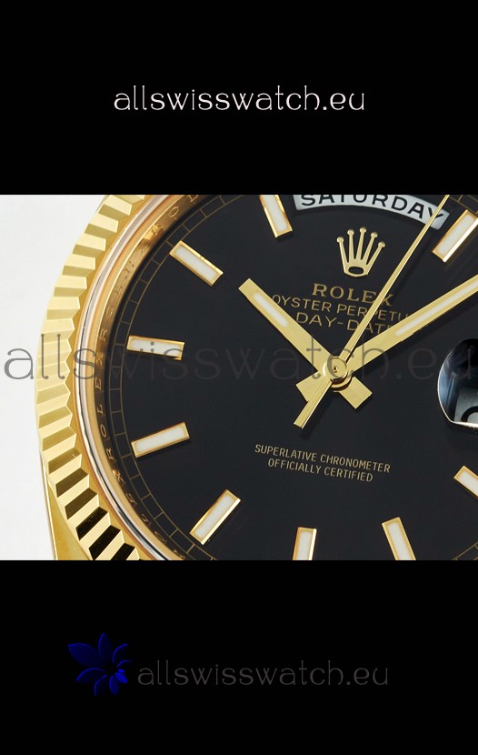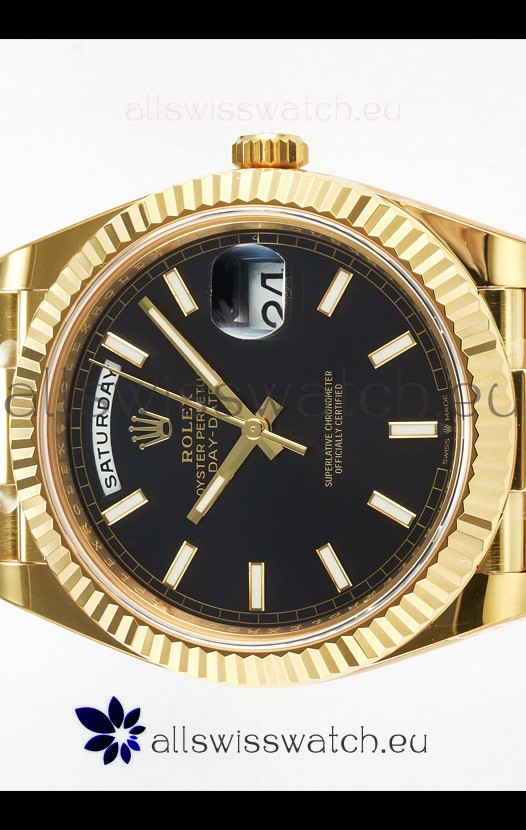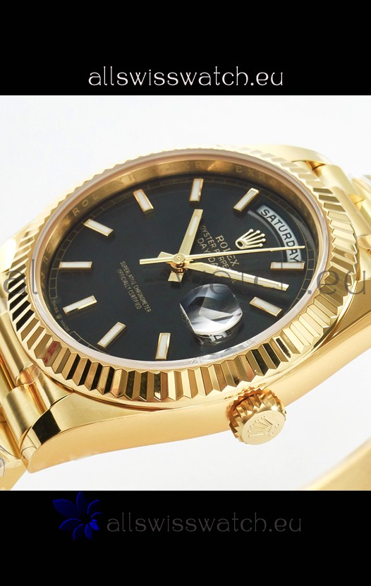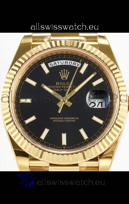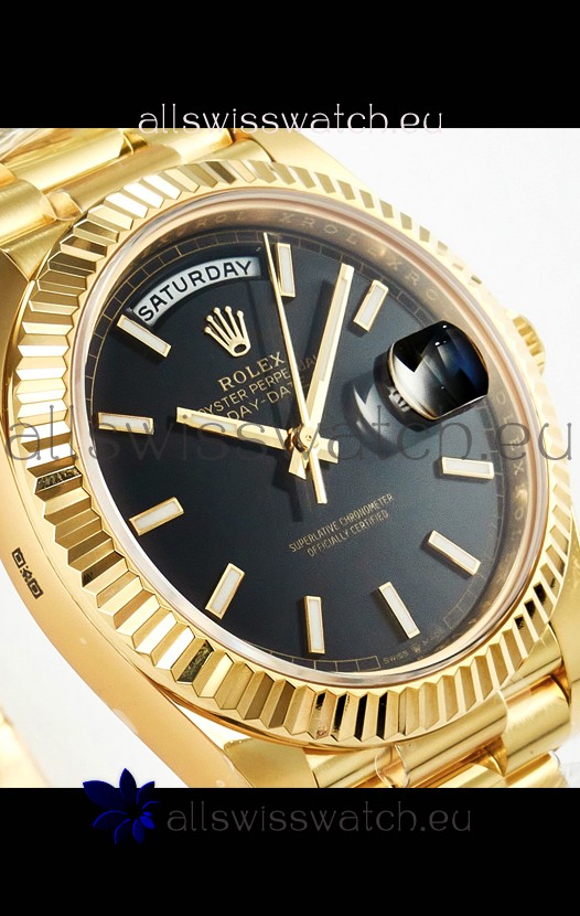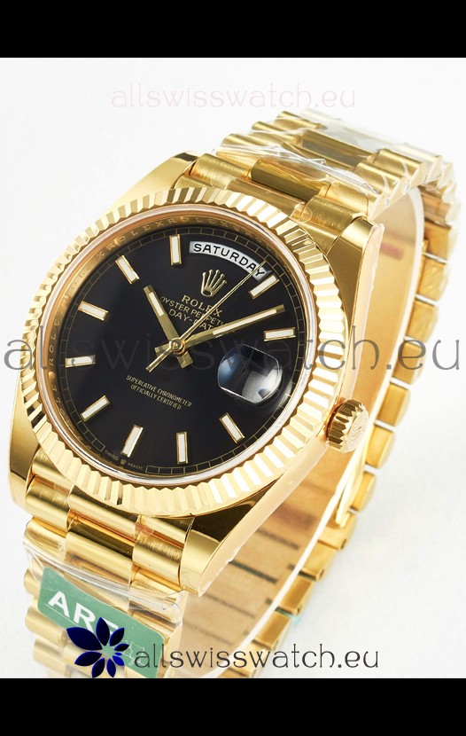 Rolex Day Date Super Clone 18K Yellow Gold Watch 40MM - Black Dial 1:1 Mirror Quality