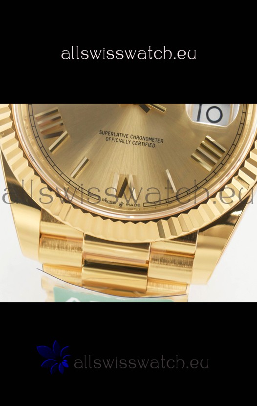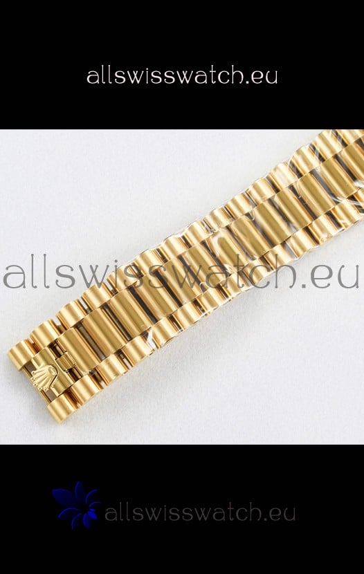 18K Yellow Gold Plating on 904L Stainless Steel New Design President Strap with Folding Clasps complete with Rolex Markings and Engravings